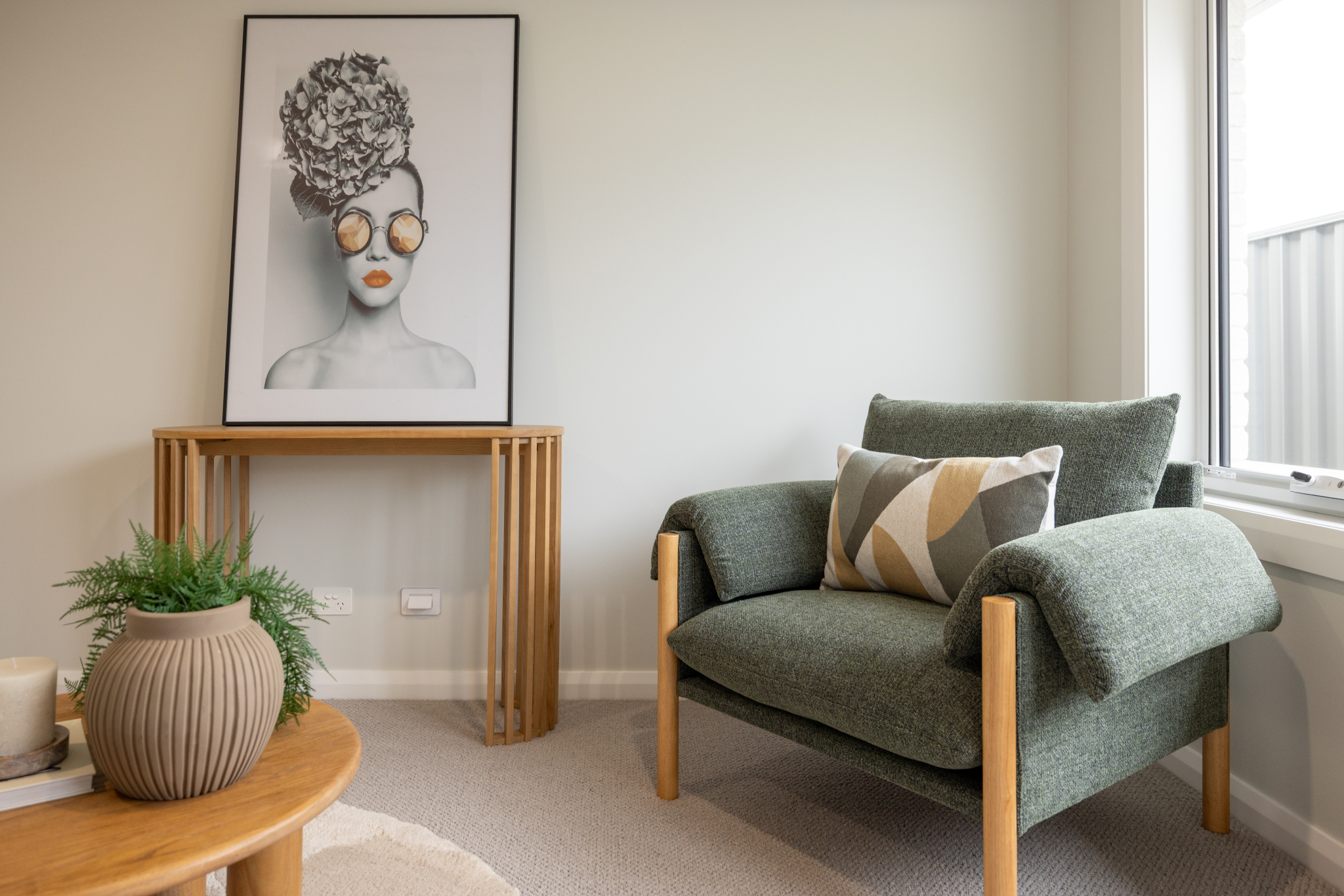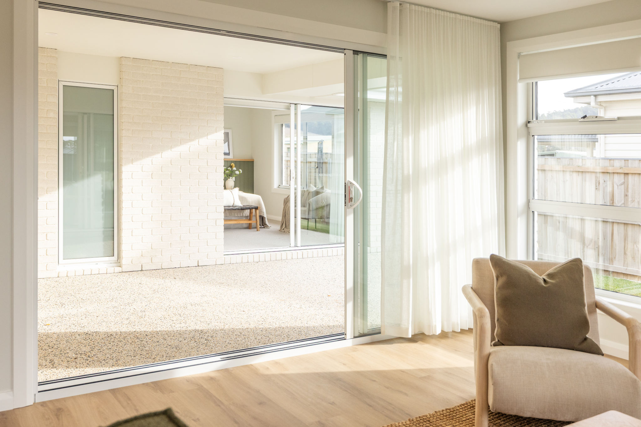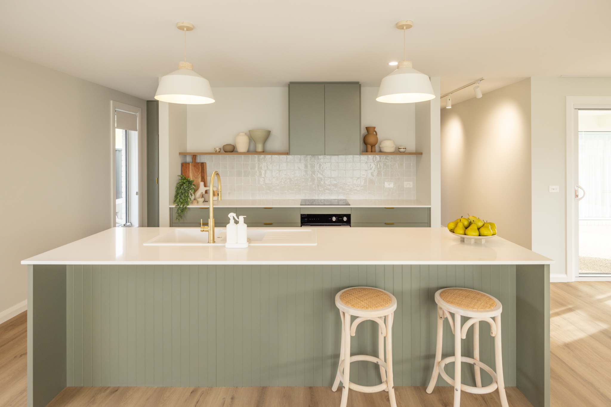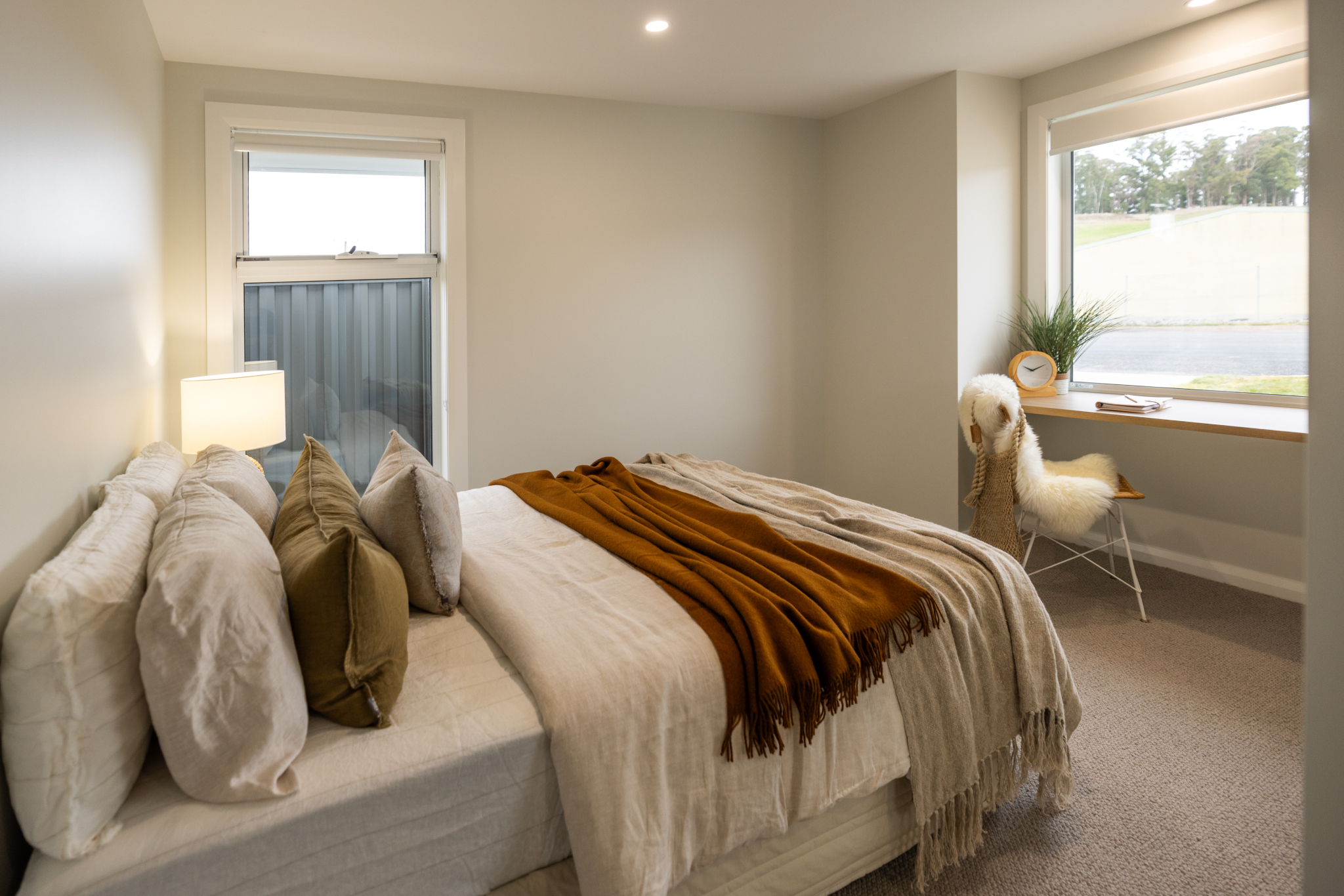 The design showcases thoughtful details throughout: a window seat with views to the alfresco, smart storage in the hallway and entry, and a generous laundry cleverly hidden within the double garage..